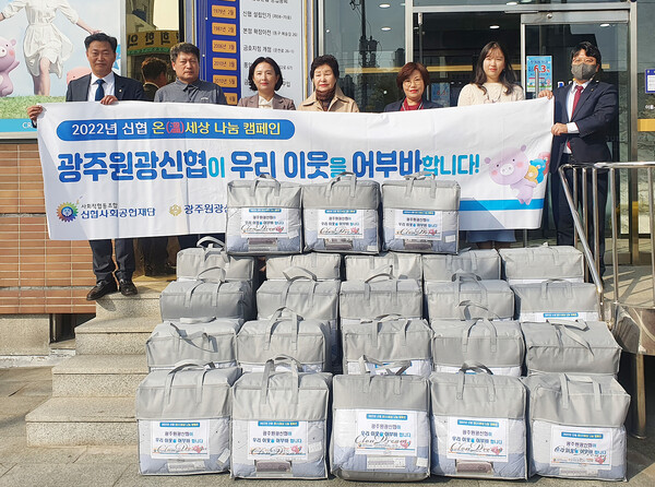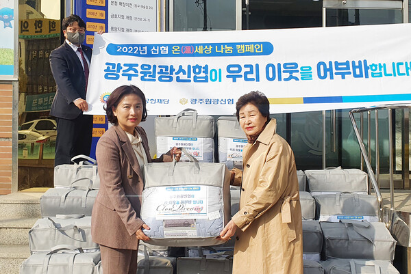 광주 서구는 16일 오후 원광신협으로부터 겨울 혹한기를 대비하여 어려움을 겪고 있는 화정1동 돌봄이웃들을 위한 겨울이불 23채를 기탁받고 어려운 이웃을 위해 후원해 주신데 대하여 감사의 마음을 전했다.